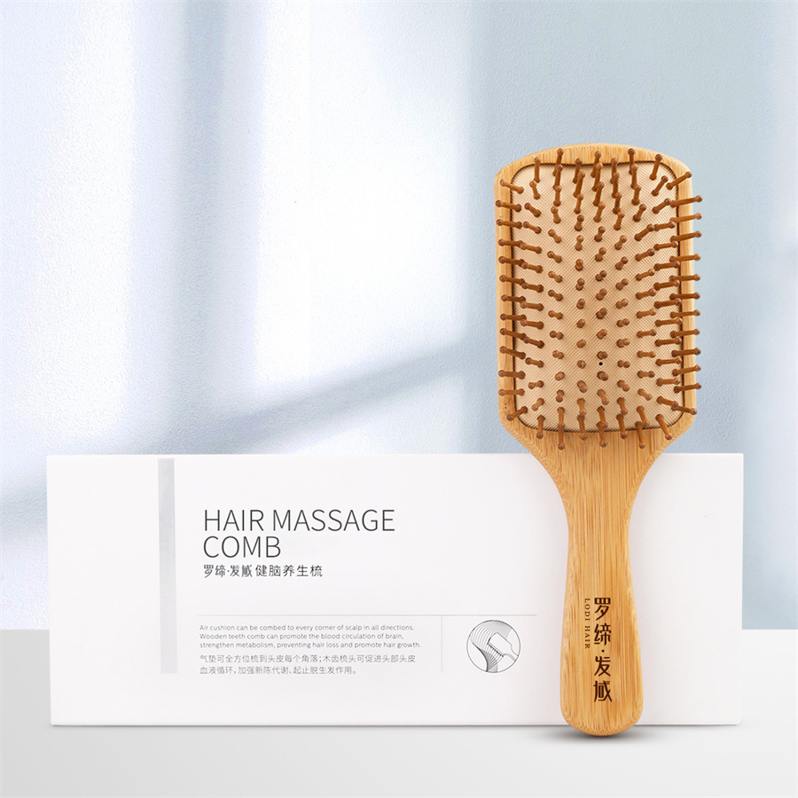 HAIR MASSAGE COMB适宜人群:各种类型脱发人群。 作 用:气垫可全方位梳到头皮每个角落;木齿梳头可促进头部头皮血液循环,加强新陈代谢,起到止脱生发作用。