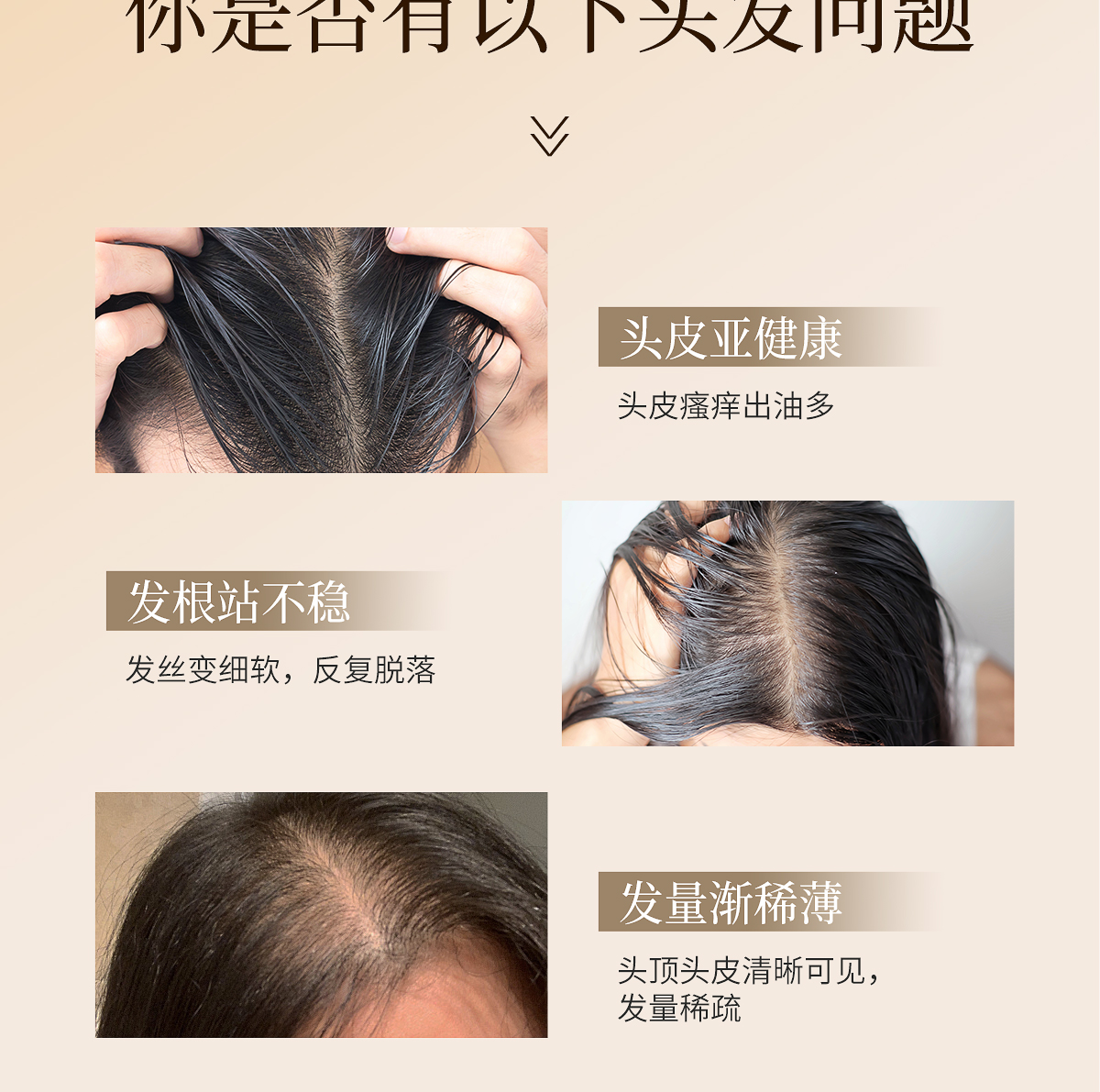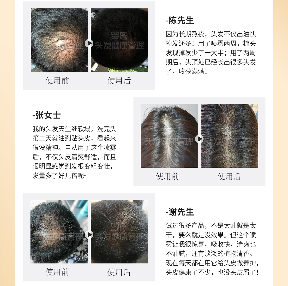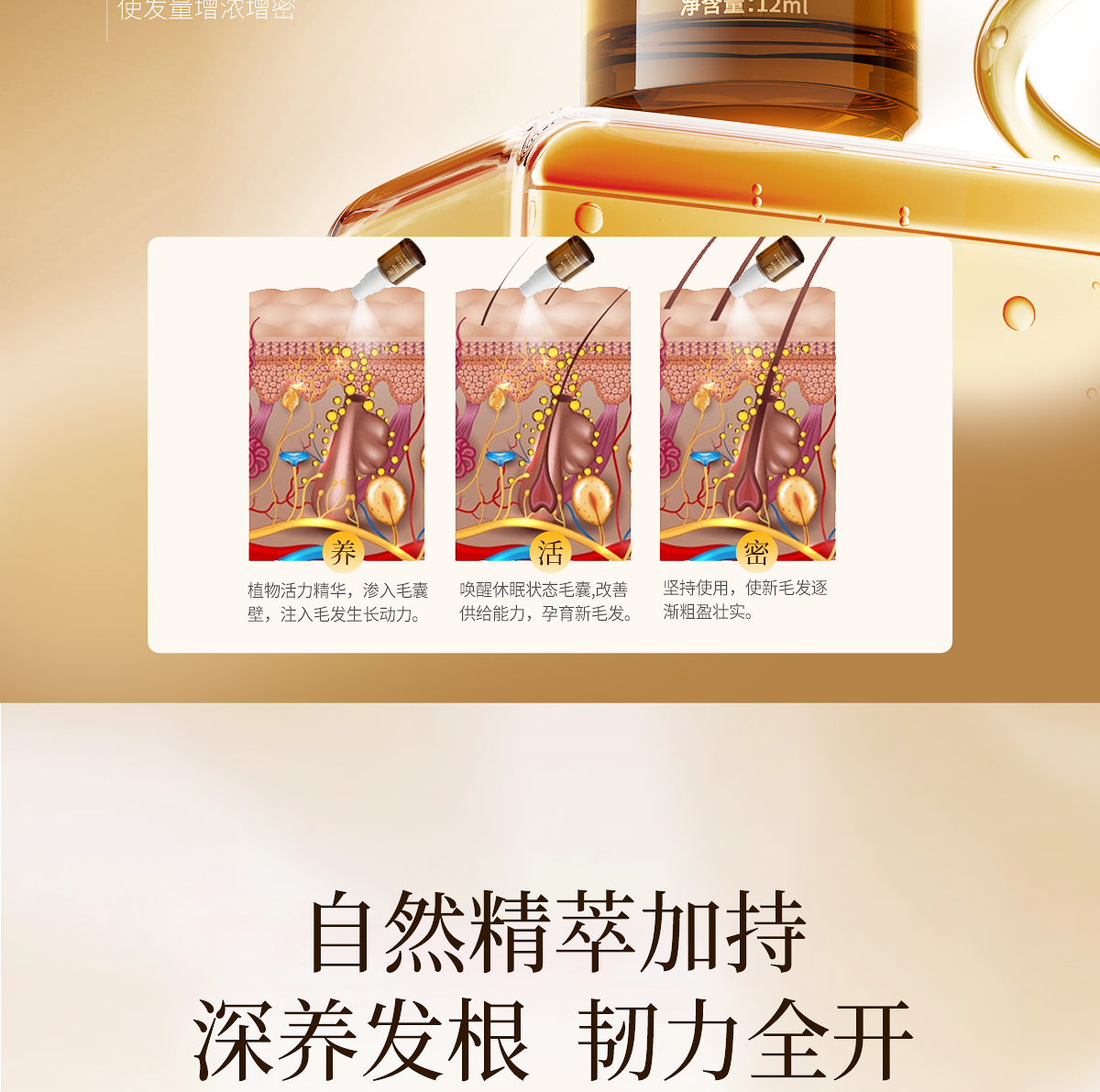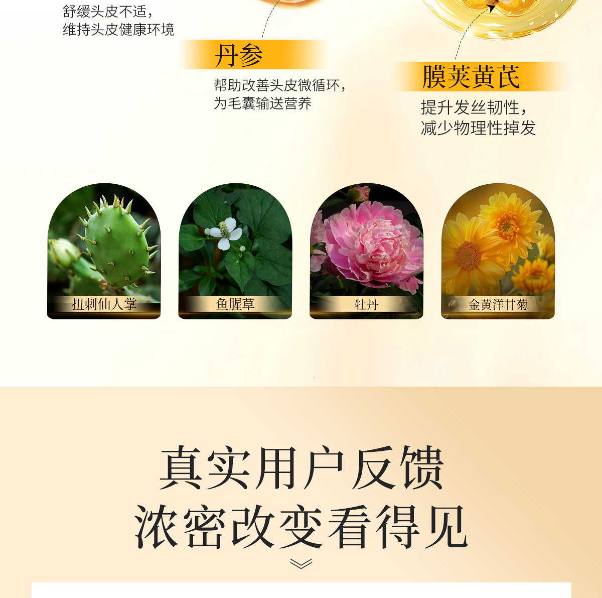 适宜人群:各种类型脱发人群。 作 用:精萃护发成分,滋养修护发丝,改善发丝分叉,减少断发,令秀发柔顺丝滑